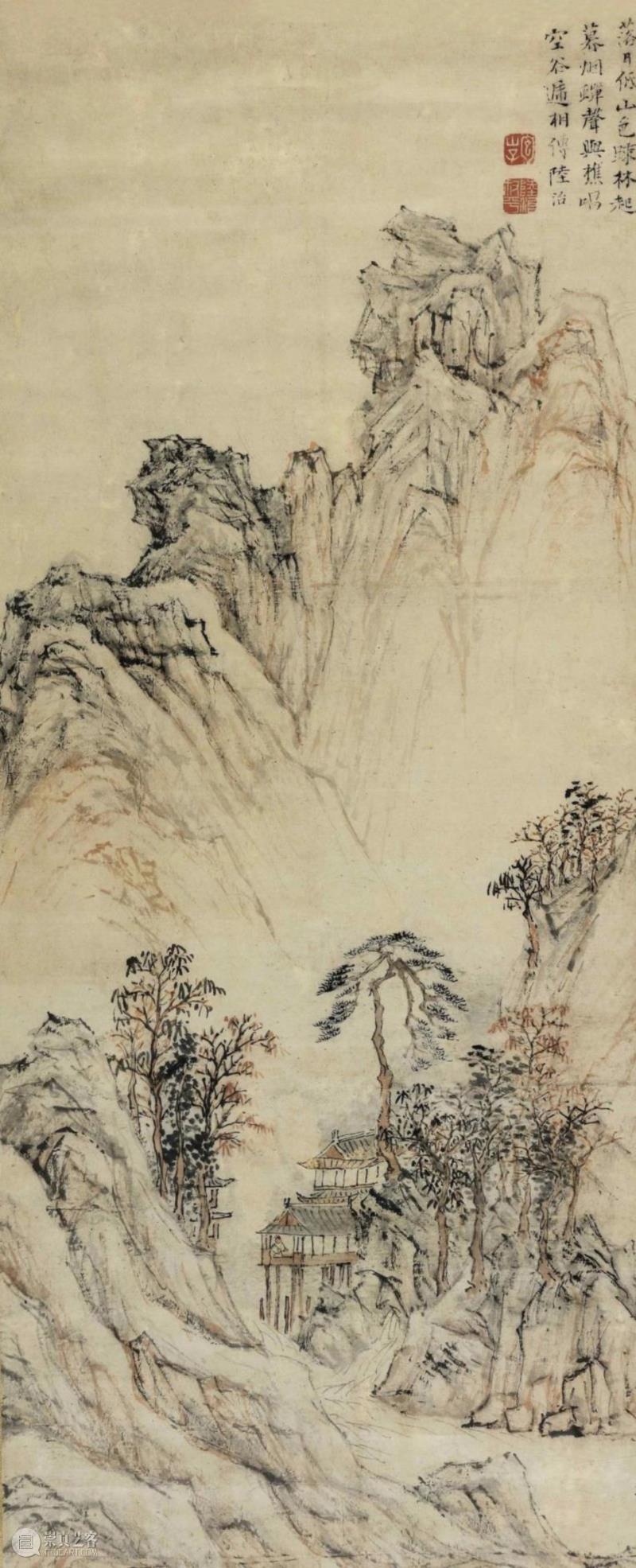 陆治《落日空谷》设色纸本 立轴