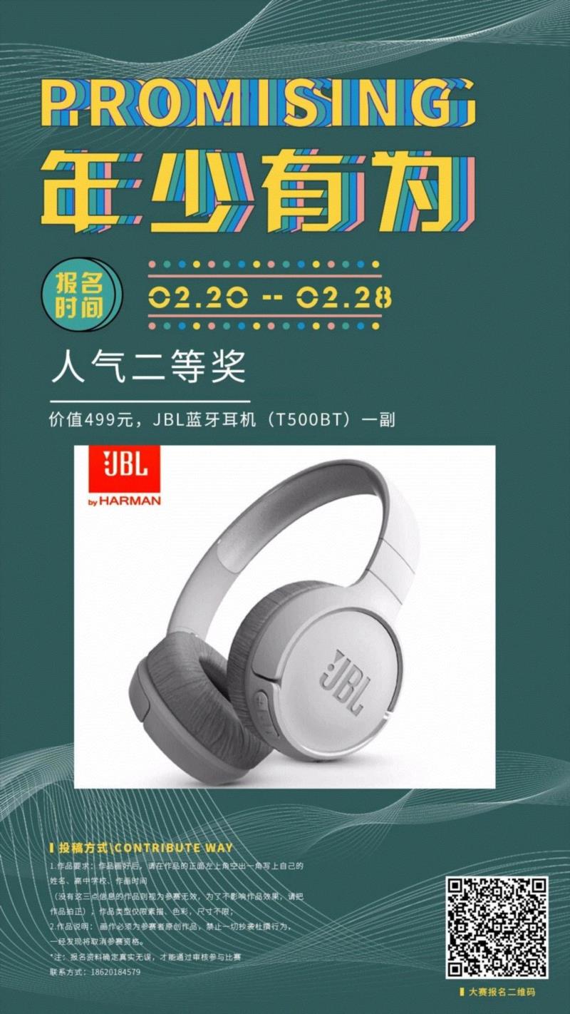 人气二等奖二名:价值499元JBL蓝牙耳机(T500BT)