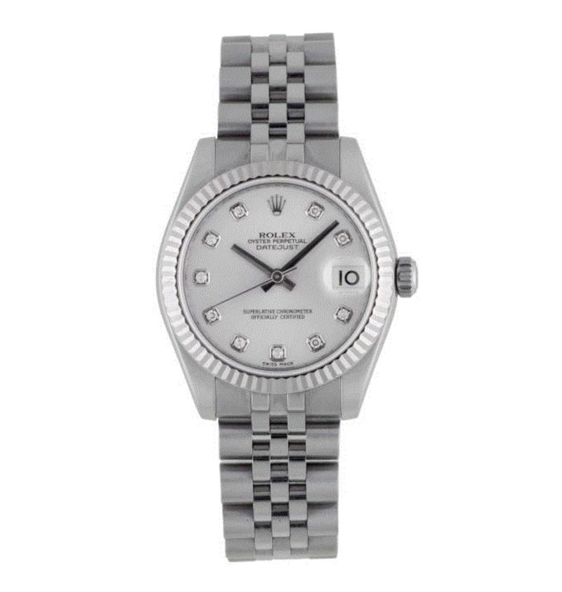 劳力士178274型号「Datejust」精钢及白金镶钻石炼带腕表备日期显示,年份约2006。