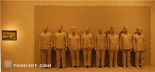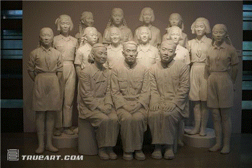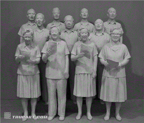妍音母亲的故事是全中国故事的缩影。很自然,她取材的第一幅照片拍摄于1949年,新中国成立的那一年。妍音根据这张照片创作了15个人像雕塑。照片中,15个人就像中国大江南北无数其他人一样,在相机镜头前摆拍庆祝。她母亲排在最后一排,面带微笑,稍稍侧脸对着镜头,耳旁露出了当时非常流行的麻花辫。照片中所有人都穿着同样的连衣裙(或校服),表情恬静,对未来充满了乐观。