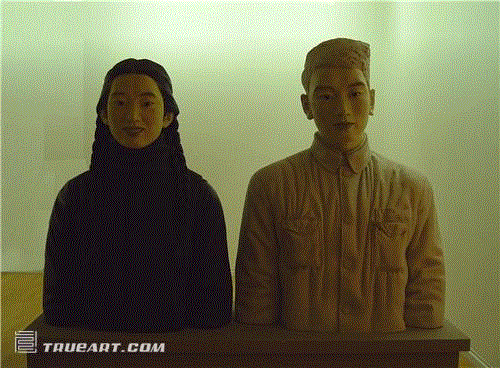 这个系列与她的其他作品不同,采用了现实主义手法。除了创作官方委托的公共雕塑作品,妍音的作品基本不用现实主义。我相信,她之所以做出这个选择,是因为她认为现实主义最适合再现那个年代的氛围。“革命现实主义”和“社会现实主义”是那个时代唯一允许存在的艺术风格。我能想起至少两位中国艺术家使用过亲戚朋友在新中国成立后30年内拍摄的照片来创作。一位是张晓刚,他创作了国际知名的《血缘》系列;另一位是海波,他用重拍来再现老照片中的情形,作品非常棒。我觉得,尽管这两位艺术家都是男性,但作品都带着更加感伤的情怀,通过影像表达自己对那个年代的向往或批判。相反,妍音则以相当超脱的方式表现对自己有着深刻影响的主题,让人感觉她好像不愿意流露太多的情感,希望让作品变得更加“普世”,或者更容易被她母亲的同龄人所理解,因为他们是最合适的观众。作为一名雕塑家,妍音将母亲生前的一些最重要的(或者在那个年代看来非常重要,需要以照片加以定格的)时刻转化成真人大小、有时尺寸更大的雕塑。而且,她好像也希望将自己带到那个时代的那些时刻中,因此对照着创作雕塑时参考的老照片,绘制了数幅油画。于是,《母亲》系列诞生了。这个标志性的系列由油画和雕塑组成,在某些绘画和雕塑旁也会附上比原版稍大的复制照片。