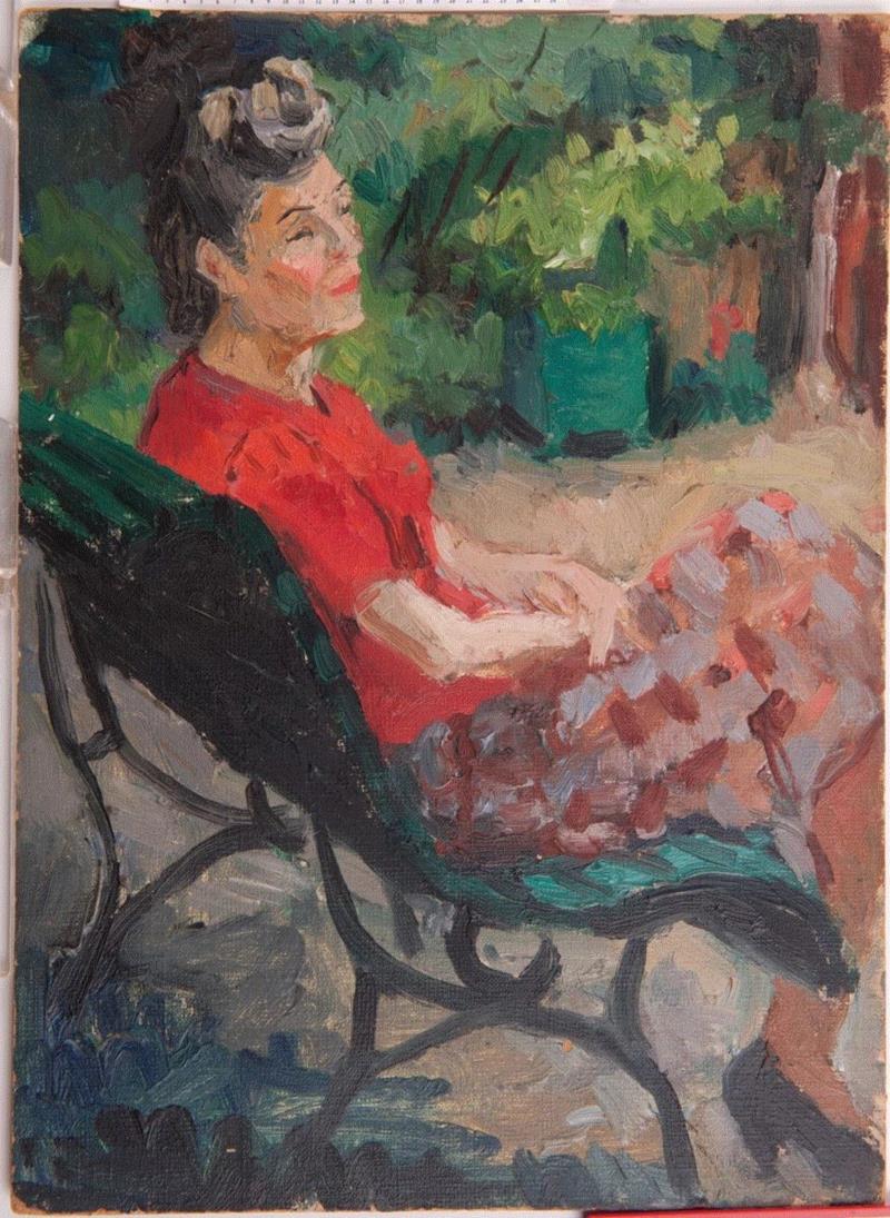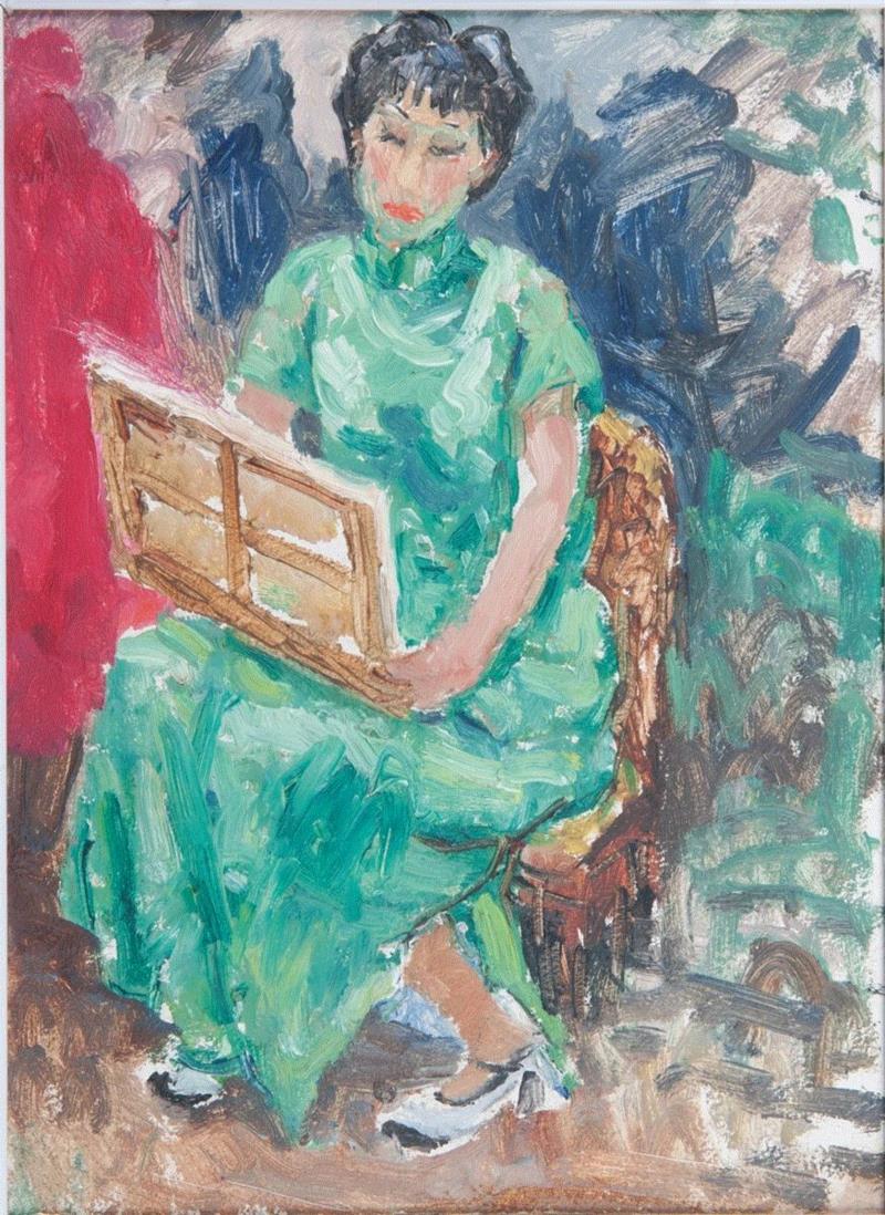 安徽博物院正在举办的“春之歌——潘玉良在巴黎”展,开篇即选用了一张潘玉良1940年创作的《红衣自画像》,与其大多数自画像一样,画面中的她身穿暗红色旗袍,侧身坐在椅上,双手下垂,右手中还拿着一封写有“玉良”字样的信件,身后那块垂挂的花布取代了平日里花瓶中盛开的鲜花,画面同样充溢着装饰性意味的东方格调。