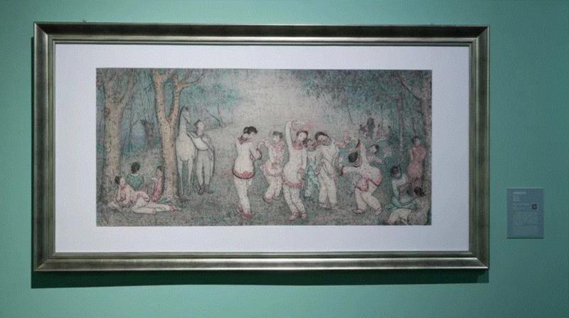 而在《歌舞艳声》这幅作品中,潘玉良以中国传统绘画的材料、元素和形式重新诠释了西方“黄金时代”的经典主题与构图。