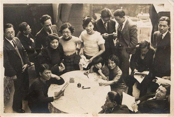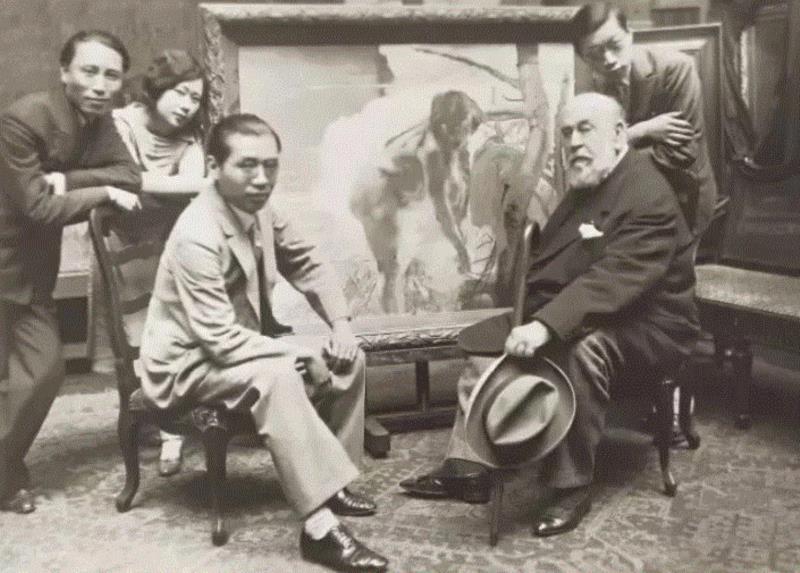 1933年春徐悲鸿在巴黎举办“中国近代绘画展览”,旅法的部分艺术家在黄显之家聚会欢迎。