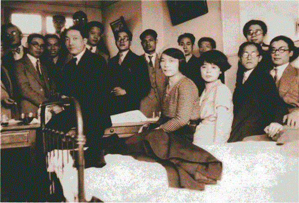 前排左起:徐悲鸿,张悟真,马霁玉,郑可,唐一禾