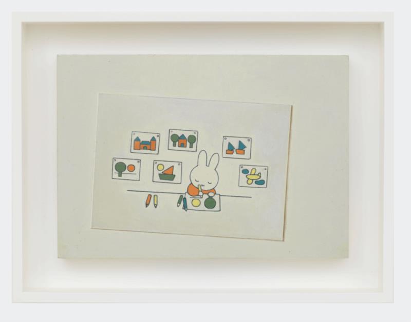 这件作品描绘了荷兰插画艺术家迪克·布鲁纳 (Dick Bruna) 创造的卡通形象“米菲”正在用一系列特定的形状与颜色画画——橘色、黄色、绿色和蓝色,米菲是刘野创作中反复出现的主题。这个画面来自于布鲁纳1990年的一幅插画,作品标题为《艺术家米菲》。正如 Y.M. 所说:“刘野最喜爱的米菲,被视作为艺术家自己的一种替代。它在作品中的出现带来了超现实感,升华了有关对比的观念,同时也展现出童话故事的感受。毋庸置疑,所有这些元素都自有意味与叙述。虽然刘野一直在自己的作品中减少叙事的存在,这与其他许多中国艺术家们不同,他刻意地远离社会-政治性的议题,不过他确实是个讲故事的人。他所存在的这个世界里,艺术、文学与流行文化互相碰撞,而书本提供着更纯粹更宏大的画面。”
