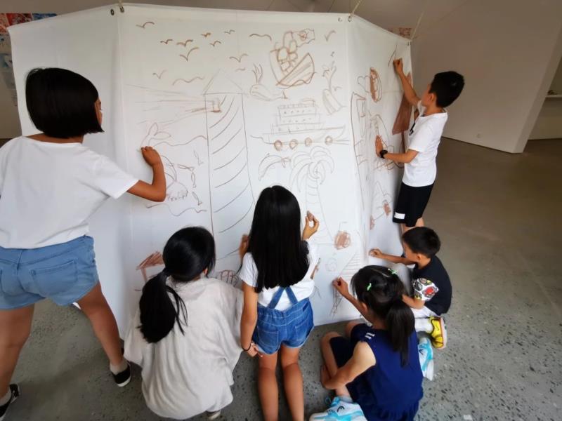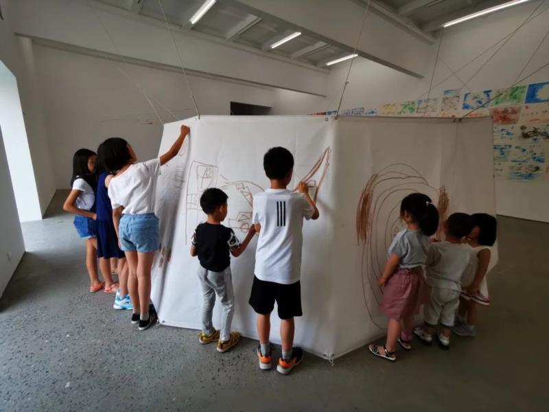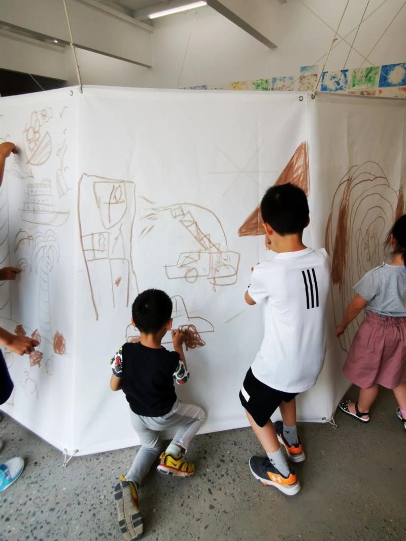 “开放的课堂”不但承载了于伯公“与当下和解”的艺术主题,同时也是一个于伯公与社会,与人交流的窗口。它融合了艺术教育,分享,交流等元素,使参与其中的孩子们可以直接与艺术家接触对话,在一个参与-学习-合作-创造的过程中,零距离接触艺术家于伯公的思考轨迹,从而开启一个新的思考模式和方向。