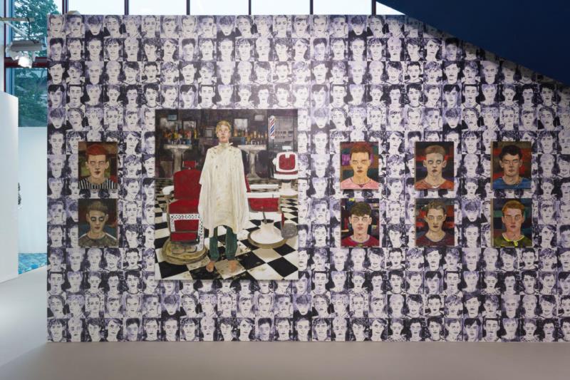 贝浩登2019巴塞尔艺术展展位现场. 图1:赫楠·巴斯作品. 图2从左至右:赫楠·巴斯、艾默格林&德拉塞特、赫楠·巴斯. ? Elmgreen & Dragset / ADAGP, Paris & SACK, Seoul 2019. 图片提供:艺术家与贝浩登