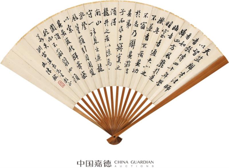 本期《中国近现代及当代书画》专场特辟扇面书画版块,收录成扇、折扇一百余件,量丰而质佳。静心欣赏此中的把把成扇,爱扇骨者,能够欣赏到其竹材的自然天趣;爱扇艺者,必赞服其制作的妙穷毫厘与穷工极巧;爱扇面者,则能品味到扇中的笔调墨韵。