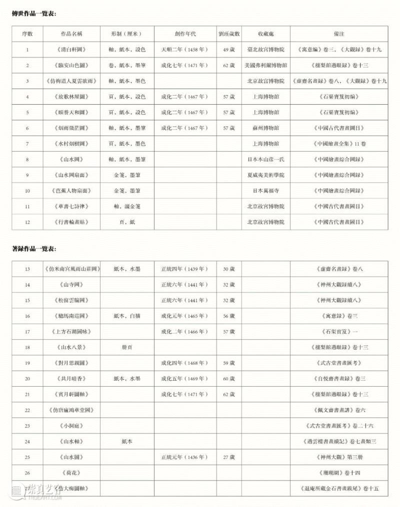 《海虞别乘》中记载刘珏“颇自矜惜”,可以推知刘珏的作品在当时能为世人所见就不多,因此他的作品迄今见於著录的甚少。根据下文表格统计,刘珏的传世作品已确定的有12幅,10幅绘画作品和2幅书法作品,都为馆藏。见於著录的其他作品有15幅。有关学者对刘珏的传世作品在题材进行了分类,大致分为两类:以室名为题材的作品和园林题材作品,而见於著录的作品比较重要的是纪游题材作品。然而,无论是传世作品还是见於著录的作品大多为描绘封建文人的隐居生活和江南的山水风景。由此我们可知,此轴是除馆藏12幅以外,见於著录的刘珏存世山水作品,其题材以描绘文人的隐居生活为主。