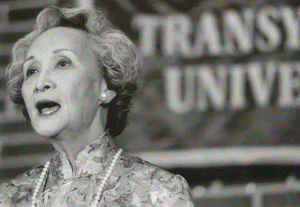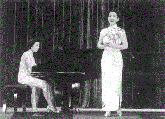2004年10月,九十多岁的她,面容清秀,举止优雅,身着一袭绛红色的丝绒旗袍,肩披一方黑色的坎肩,仪态万方地依在雕花栏杆旁,一亮嗓子,博得台下掌声一片。