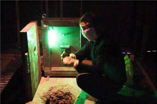 史晶的第三个实验体现在《黑森林》、《废园》这样的作品中,这些作品是在一个或者多个颜色的灯光下进行的,他仍然使用单一的颜色,但是对这些作品的描绘可以不注意任何的形象与素描关系,而是可以胡乱的涂点,他企图使图像的感光度达到普通数码相机的模式,而与人的肉眼的感光拉开距离。他发现人眼与数码相机之间有一个夹层,这个夹层可能是被我们曾经忽略的灰色地带。他想探求这个灰色的地带究竟有着怎样的可能性和多大的领域。从而我们发现在这个灰色的地带中,抽象表现主义、神秘主义以及现实主义其实都共生在一个时空中,相互之间可以任意转换与置换。
