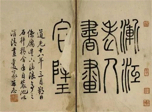 这套册页能够经历史风霜流传至今是非常不易的。它在古代文献中被多次著录,其中黄宾虹先生在《古画微》中也特别提及。古时,弘仁的作品多存于杭州,杭州的藏家在交易中使它一页页散逸了。十九世纪咸丰年间,同样是名画僧的达受(1791-1858)在杭州看到了几页作品,深感可惜。于是云游四海将其余作品寻回,亲自裱还一册。此册最前页的标题“渐江老人书画合璧”就是他亲自写的,后面还落款并盖上了自己的印章。因此黄宾虹称之为无上至宝。能收到这件作品让曹先生非常欣喜,并由此开始了他的17世纪画作的收藏整理工作。