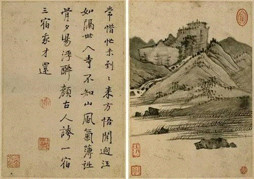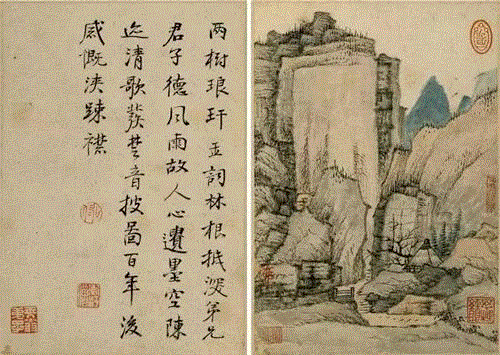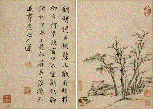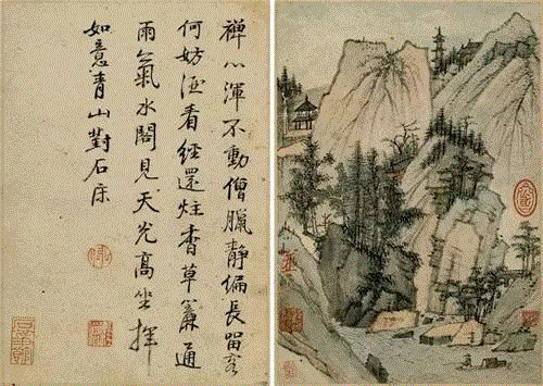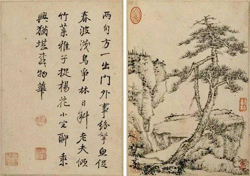▼?弘仁《书画册》十开,其中九开对页有弘仁书法