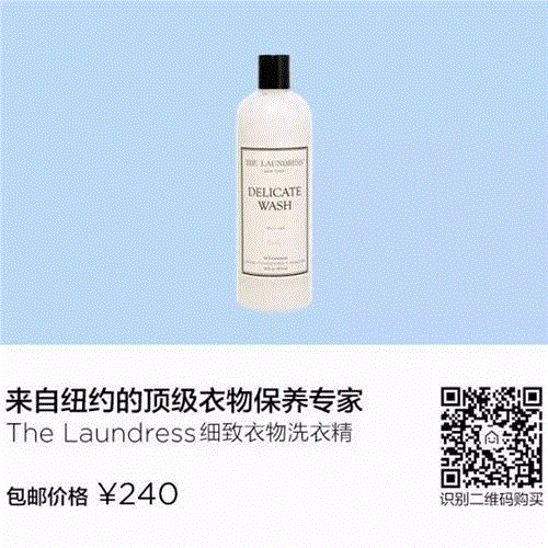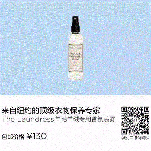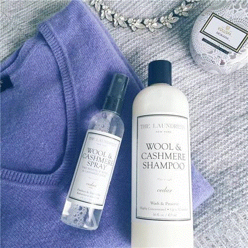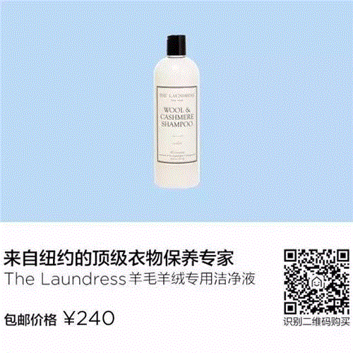 The Laundress的羊毛羊绒专用洁净液(Wool & Cashmere Shampoo)含有天然植物去污成分,适用于任何材质的毛料衣物,包括顶级的克什米尔羊毛及安哥拉羊毛等,可消除常使用于干洗店的有毒且易致癌的洗剂,如:PERC(四氯乙烯)。