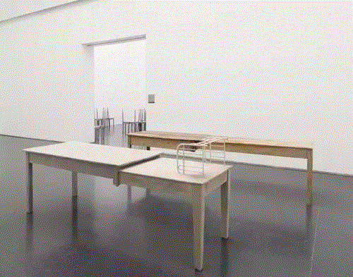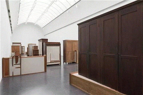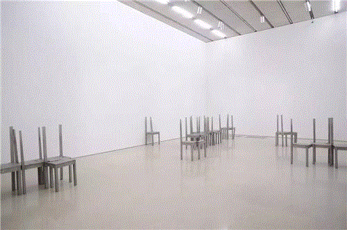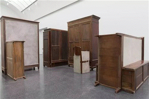 “Untitled" works, 1989-2008, wooden furniture, concrete, clothing, steel and glass