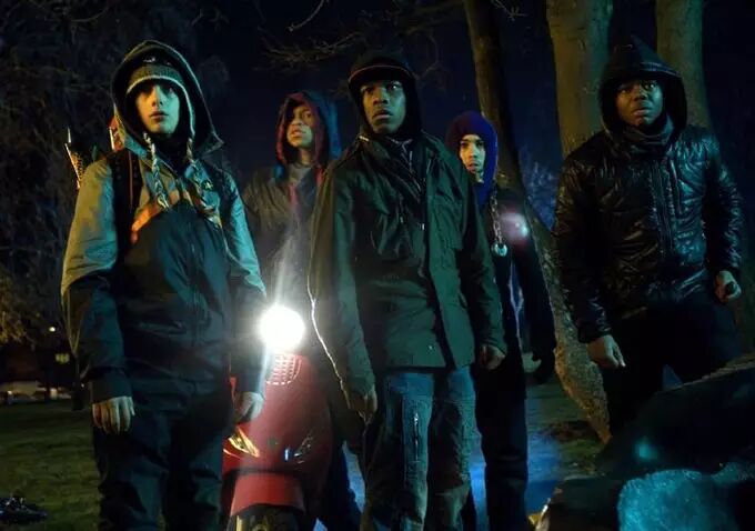 尽管阿方索·卡隆的《地心引力》严格意义上不算科幻片,但因其所展现的科幻探索发现精神,我们在此榜单中将其视为科幻片。艾曼努尔·卢贝兹基的摄影获得了奥斯卡的肯定,桑德拉·布洛克也贡献了坚定动人的上佳表演。虽然该片也有些缺点,比如某些冗长的对白和乔治·克鲁尼的角色让人稍显意外的回归。但该片的画面饱含诗意,营造出观众前所未见的独自身处浩瀚宇宙的孤独感,这也是IMAX 3D史上最佳效果。这部电影的制作过程比它的故事更体现科幻片的特质,制作、场景、CG魔术的运用成功营造了充满真实感的画面,已然成为了业界传奇。12.《街区大作战》(2011)