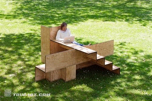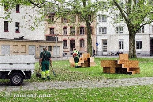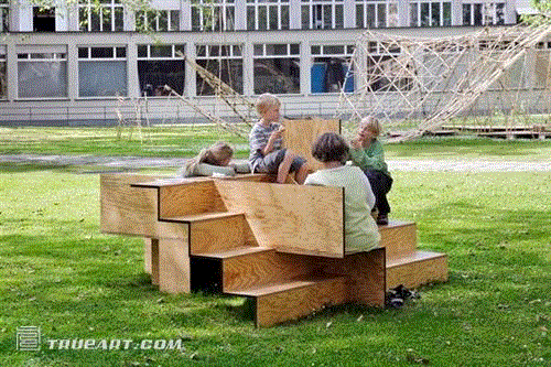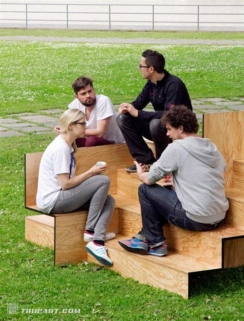 这是瑞士设计师 sebastian marbacher 的一个公共空间设计尝试,将木楼梯重新组合成一个多方向的休息平台,给小伙伴们一个互动交流的空间,就像回到学校操场的看台上。这真的比草地上的一排长椅要有意思多了,你觉得呢?