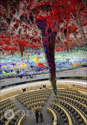 这件作品由西班牙艺术家米盖尔·巴塞罗创作,耗时一年多,占天顶面积1400平方米,消耗了100吨采集自世界各地的颜料。