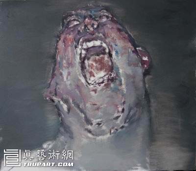 在巨幅油画中,我将人物肖像夸张的表情充塞画布空间,大脑壳犹如空降的一场灾难令人震摄,仿佛突入其来的风暴横扫整个画面,让观者自己也置身于风暴之中,与大脑壳一同抗拒风险。这个时候,我先前研习的古典油画技法帮助我控制住画面,在200×200(cm)、200×300(cm)的巨幅作品中,无论是《痛苦》系列、《呐喊》系列或是《尴尬》系列,如此硕大的人头也能像定海神针一样使整幅画感到均衡。急促而又强烈的笔触所制造的节奏感如暴风雨之后的海面复归平静。日出与日落也只是瞬息之间。岁月在流淌。局部的油彩以滴血的自然流畅缓解紧张。画布上的空白或者如同传统水墨画留白,轻描淡写之中抹笔抒怀都能凸现人物肖像大山般的依托,将现代人精神世界的根源编织入画。