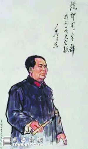 再让我们看看这是一幅什么样的假画。作品为毛泽东右手端握毛笔独自站立的半身像,画面右上角有毛体竖字三行——“炮打司令部 / 我的一张大字报 / 毛泽东”,左下角为画家名款——“吴冠中画于工艺美院 一九六:年”。有意思的是连“六”后面冒号这样一个画家代表重复字的习惯写法,竟也成为被告方自愚一把的强辩,他们肯定地说这就证明画是吴冠中在一九六六年创作的。稍稍有点儿美术欣赏眼光的都不难发现,这幅肖像画的艺术水准并不高,属于一幅口诛笔伐时代的大字报式宣传画。熟悉“文革”历史的都知道,《人民日报》头版套红发表“炮打司令部”一文的准确时间是1966年8月5日,用吴冠中的话说,当时正大张旗鼓地批判个人主义,谁作画也不署名,何况他这个已被剥夺创作权的反动学术权威,吃了豹子胆也不可能署上自己的姓名。