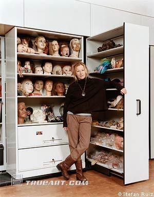 辛迪•舍曼(Cindy Sherman)在她纽约的工作室与衣柜、道具的合影
