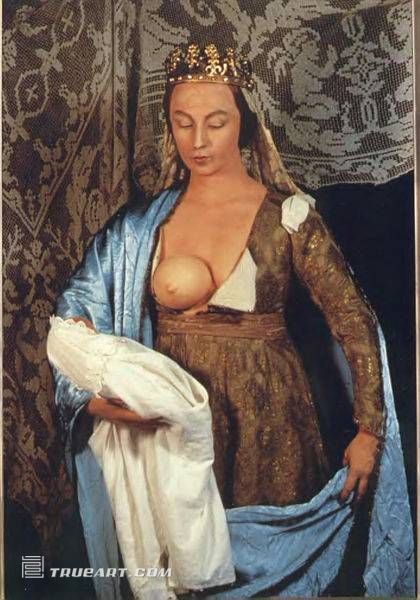 系列中还不乏其他的混乱泥沼:动作明星的玩具被烧熔、肢解。“有个比例正常的同性恋男性玩偶,他有个超大的阴茎,所以我必须得那么做——我记得他的名字叫‘同性恋鲍伯’(Gay Bob)。一年之后,同一家玩偶公司出品了他的一位朋友,据说是拉丁裔的。”辛迪对鲍伯和他的朋友下了毒手,但“我当时正在闹离婚。那并不是类似‘我恨你’的感情;而更像种趣味,像一个科学项目。”当然冥想也是无可避免的:其《历史肖像》(History Portraits,1988-1990)系列对几位古典绘画大师的代表作人物进行了机智摹像,她们抛却了陈规戒律,来到了马戏团。包括让•福凯特(Jean Fouquet)露出一枚乳房的圣母(Fouquet Madonna) ;波提切利(Botticelli)的荷勒弗尼(Holofernes) 俨然成了万圣节的斩首道具。