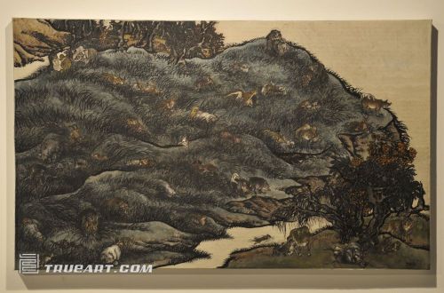 “十一日谈”看似是叙述性的作品,其实不然。它的灵感来自于意大利小说家薄伽丘的著名小说集《十日谈》。杨诘苍的“十一日谈”便是吸取了这部中世纪著作的寓言意义。他将不同的动物之间、人类与动物之间的互动置于一个天堂版的环境之中。艺术家通过作品展现了一对对个体形式各异的互动交流,包括充满新鲜和好奇的初识、快乐的交流和欢愉的交配。界限、差异和偏见在这里毫无踪影,而平等的互动、关怀和爱则无处不在。艺术家以中国传统山水画为样式描绘出来的景色表现的是一种普世而永恒的自然风光。杨诘苍所创造的这片保证公平交流的幻境,让我转而反思如今这个所谓全球化的世界。只不过,他的“世界”是建于平等、互敬和关爱的原则之上的。“十一日谈”以寓言的手法呈现了一个乌托邦,一个久远的梦。但是,就如同薄伽丘的《十日谈》这一部故事集以黑死病为背景一般,杨诘苍这一感官天堂的幻象诞生于如今不乏眼中危机和冲突的时刻。