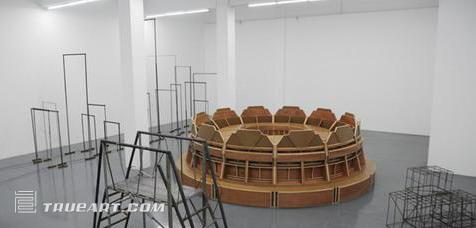 切割手法便是刘韡沿用至今的。2006年“看见的就是我的”系列中,他用宝丽来相机拍下各种家用电器和家具、并按照片画框中呈现出的局部状态对实物进行切割。这种经由切割惯有形态、进而关乎“观看方式”的强烈暗示,一直存在于刘韡或大或小的装置作品中,用各种工业、民用材料组合、搭建的形式在他的创作中逐渐变得笃定、纯熟,具体材料与形态的变化,造就出的似乎只是其形式政治中的种种变形。艺术家刻意剔除材料原本的功用,通过新的组合关系提供新的视觉经验、提出新的可能性,这在长征空间展出的新作中得到了延续。