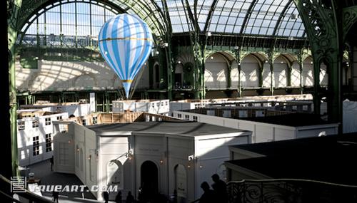 卡尔·拉格菲尔德(Karl Lagerfeld)亲自操刀设计场馆,运用巴黎经典风格的橱窗场景,将每个摊位都布置成白色的木结构- -每个具体布置各有特色,但是风格相近—相较于大皇宫万国云集的场景,这样的设计更有效果,特意布置出的街道上亮起了灯笼亮,人们为了开幕式从各地蜂拥而至。在场地的中心位置,一个巨大的热气球成为大家讨论的中心,作为第一次尝试,它将成为大皇宫(Grand Palais)的记忆之一。