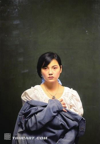 在展览现场,超写实画作《小姜》《小唐》前观众围得水泄不通。他们纷纷讨论头发是怎么画的、毛衣的质感是怎么处理的。坊间有说冷军是拿着修手表的放大镜画画的,甚至还有人说他足不出户,整日在一个5米高的小阁楼上画画,吃饭时有专人把饭用绳子吊上去。对此,冷军说,他的画只是从视觉出发,眼睛感知能力之外的因素没必要画得更深入。