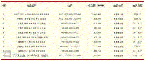 回顾2011年,香港苏富比在秋拍中推出了“芳华绝代——梅艳芳珠宝手表珍藏”专场,43件梅艳芳生前钟爱的手表与珠宝以558.52万元拍出,成交率100%。其中一套GIANMARIABUCCELLATI的珍珠配钻石项链及耳环拍出了129.5万元。北京永乐在春拍中推出了“华彩霓裳——张信哲先生珍藏清代织绣专场”,77件珍品中52件易主,成交额达429.3万元,成交率67.53%。而在2011年最值得提到的就是伊丽莎白·泰勒的珠宝拍卖,在纽约举办的这次拍卖将展出了300多件泰勒生前拥有的珠宝,估价超过了3,000万美元。虽然名人拍场在中国并没有太多年的历史,已有的专场在规模上宣传上也非常有限,但是还是不难看出市场对这类专场的兴趣和热情。这些已有的专场也这个领域算是一个很好的开始。