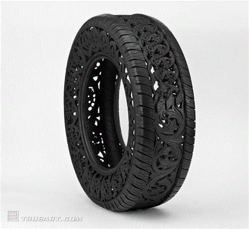 和当代大行其道的极简主义不同,威姆更偏爱古典哥特式的复杂和精美。这一点从他的《垃圾车》(Dump Truck)、《小教堂》(Chapel)、《塔》(Tower)和《有污迹的玻璃窗》(StainedGlass Window)等系列作品里可见一斑。前三组作品都是用精美的哥特式雕饰纹路组成的立体不锈钢模型,分别是卡车、教堂与塔的形状。较小的模型只供放在桌上观赏,而大的作品,如Tower 系列中曾经放到上海静安雕塑公园的一个作品有12米之高。《有污迹的玻璃窗》系列,用包括X 射线在内的现代工艺技术制作了一组教堂玻璃,玻璃上的图案主要由人体器官和骨骼的X 光片构成,有的X 光片甚至显示着接吻、亲热的图案。在威姆的作品里,你能很容易查找到历史文化和宗教传统的痕迹,然而这些痕迹又被毫不留情地抛到现代的反传统面前,在内容和形式上既对立又统一,这在普通极简主义的作品里是很难表现的。去年,威姆关闭了饱受争议的艺术农场,原因是,他的创作兴趣已经转移到了轮胎雕刻这个系列作品上。收集废弃轮胎,再在其上刻上巧夺天工的精美雕花,哥特式的复杂和结构让无用之物变成艺术品。威姆作品中表达的顽劣、反抗态度让人惊叹,眼前的究竟是“狗屎”,还是艺术?