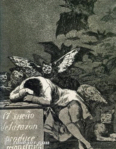 西班牙18世纪绘画大师戈雅的《理智入睡催生恶魔》