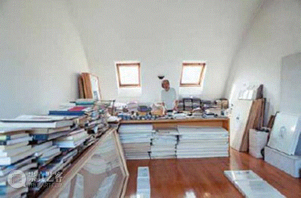 他的工作室也是以一种低调的白色来布置,很容易让人关联起他作品中经常出现的白色空间。在他的白色工作室里,所有的东西都被堆放得井井有条而显得整洁干净。眼前的何赛邦白皙而清癯,我想,这个何赛邦应该是内心细腻而思维冷静的。于是,我们的谈话就在他所堆起的几百册整整齐齐的“书桌”前开始了……