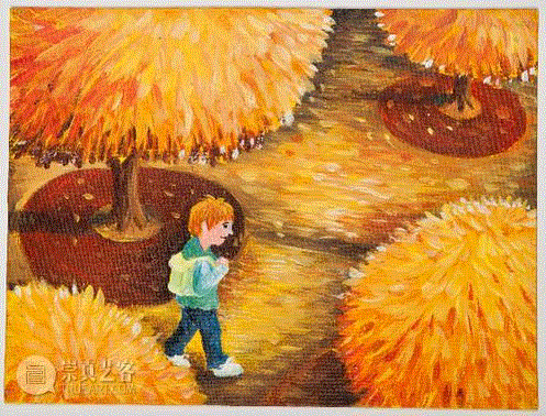 李公明:他绘画的天赋非常好。首先,他把自己生活中的感受全面而细腻地在画面中进行了充分的表达,他的画作典型地表现出儿童绘画关注生活中观察以及头脑中的想象的特点,包括他们对于生活那种朦胧的渴望,这个表现得非常真实。譬如,他的画作主题有跟爸爸妈妈散步、跟大自然当中的树、小动物以及星星发生联系,这些都是典型的儿童绘画世界。其次,在他的家庭于2009年发生的悲剧性事件之前,作为一个小贩家庭,家长意识到这个孩子有一定的美术天赋,所以尽量支持和培养他绘画。可以说,他能够融入到现在那种主流的儿童美术教育中的过程是很自然的,所以我认为他既有绘画天赋,同时也接受过儿童美术教育的训练。