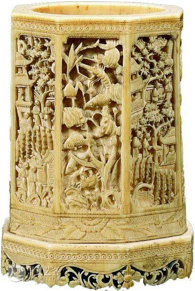 在我国,因为受到佛教影响,象牙被赋予避邪的寓意,也使得象牙成为贵重的特种工艺制作材料。象牙雕刻与竹雕、木雕并称为传统雕刻工艺中的三大门类。象牙雕刻的艺术品坚实细密,色泽柔润光滑,备受历代藏家珍爱,通常以“竹木牙角”分类,成为独具特色的文玩艺术品。
