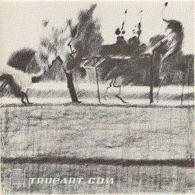 Tonal landscape study,1959,Black pastel on thin paper 40×42cm