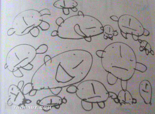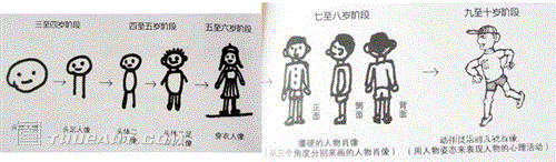 上图是三岁到九岁孩子对人像画方面的自然发展过程。???