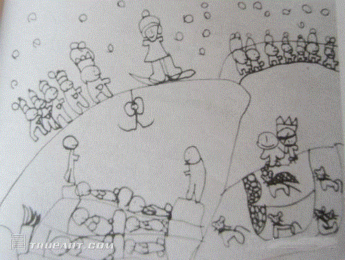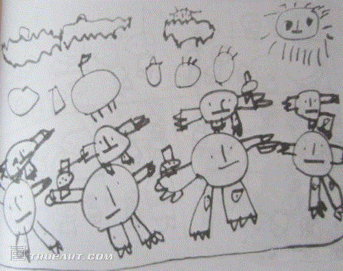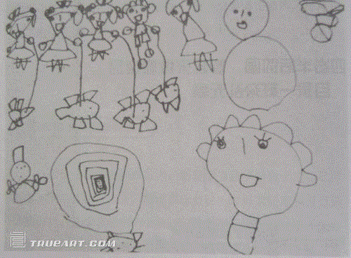 4,对于孩子的绘画是不能用好坏来评价的,更不能用来做类似心理分析以试图判断孩子的性格,这完全没有意义。孩子的涂鸦仅仅和哭笑一样是表达心情的一种方式而已。一副孩子为了表达自己内心的感受或想法的画,即使在技艺上还未成熟,但通过这种自由的绘画方式使得表达的愿望得到了满足并体验到了愉悦,这就是表达的快乐。???