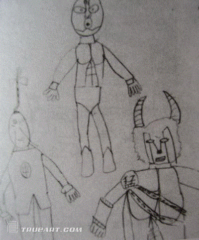 孩子到了七岁左右就会开始分别从正面、侧面、背面三个角度来画人物肖像了,接着就在八岁左右孩子会开始画有动作的人物肖像。?尽量让孩子少去临摹电视或动漫里的人物形像。