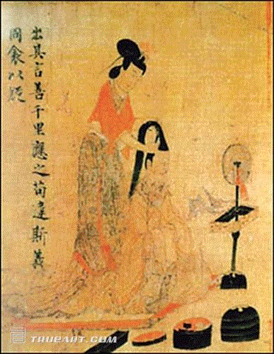中国东晋画家顾恺之的《女史箴图》,在中国美术史上具有里程碑的意义。这幅长卷按故事内容分段作画,全卷内容原为12段,每段画一个故事及小楷书写的箴文,画面在一定程度上展示了中国古代贵族妇女生活的一些真实侧面。《女史箴图》原作已佚,目前传世的有唐宋两个摹本,其中唐摹本被视为最得原作神韵的珍品,现存自“冯媛挡熊”至“女史司箴敢告庶姬”共9段,注重人物神态的表现,用笔细劲联绵,色彩典丽、秀润,画本身及装裱部分压有宋、金、明、清内府藏印,及明清历代收藏者的私人鉴藏印。它曾是乾隆皇帝的案头爱物,后收藏于颐和园。颐和园被焚毁之际,《女史箴图》唐摹本被英军大尉基勇松盗往英国,后存于大英博物馆。