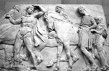 埃尔金石雕是古代希腊帕特农神庙大门和殿堂顶部的几组大理石石雕,可谓帕特农神庙最精华的部分,距今已有2500余年历史。19世纪初,希腊为土耳其奥斯曼帝国所统治,当时的英国驻奥斯曼帝国公使埃尔金倾心于帕特农神庙一幅幅的大规模古代大理石石雕作品,开始将石雕从庙中取下并肢解运回英国。这些石雕最后卖给了大英博物馆。