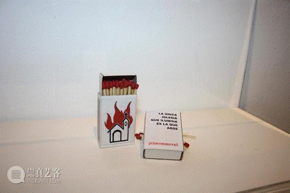 马德里的索菲亚王后艺术中心(Museo Nacional Centro de Arte Reina Sofia)近日展出了一件火柴盒艺术品,因其广泛争议。这一作品是展览《真正有用的知识》(Really Useful Konwledge)中的一件,由阿根廷女性艺术家群体Mujeres Publicas创作,包括了两个火柴盒,其中一个上绘制了被点燃的教堂,另一个写道“只有燃烧的教堂才能照亮。做点贡献吧!”一些宗教组织认为这件作品是在借用国家基金来“侮辱教会”。