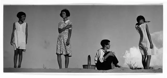 主要在六十年代创作的《童历》是我最喜欢的植田正治作品——温情和诡异的结合,如日本童话。表明是关于鸟取地区的岁时风土人情,实际上把原来戏剧的舞台移到了日常生活中,更为神秘,可能对日后的怪导寺山修司的诡异田园电影也有影响。大多数是远景,人的自由和非自由同样忍隐于无情山水其中。