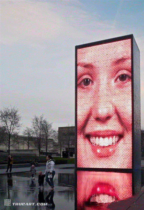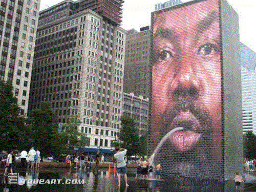 他最有名的作品是芝加哥千禧公园的皇冠喷泉(Crown Fountain)——一个由黑花岗岩制成的倒影池,两侧是两座50英尺(约15米)高的玻璃砖建塔楼,最特别的是,它记录了1000个芝加哥市民的脸上表情,透过电脑控制LED灯光色彩,不断变化的人脸于口中喷吐出股股清水。