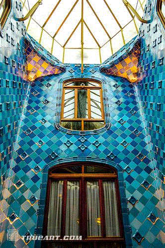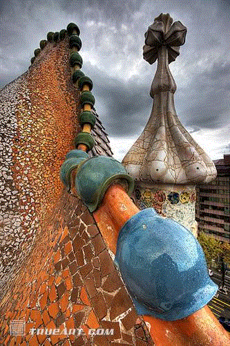 巴特洛之家是我个人印象最深的一座高迪建筑,大概是缘于完整性。虽然它并不是高迪建造,但在改建和设计的过程里也富含了高迪的思想精髓,所有细节都让人赞不绝口。尤其是海洋瓷砖的内立面,以及龙鳞屋顶,像一个屠龙骑士的童话。