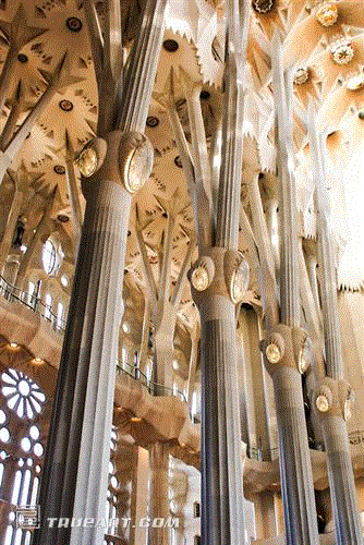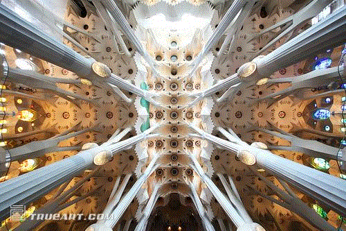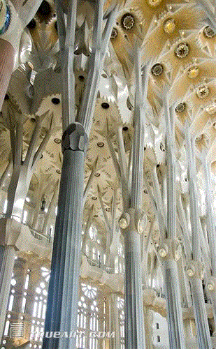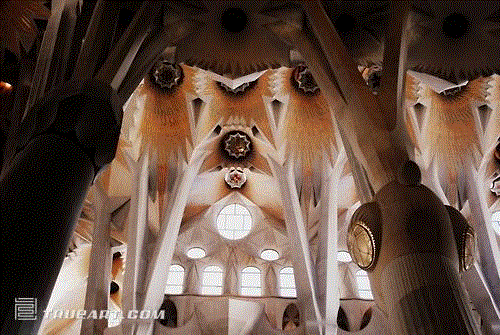 (圣家堂的内部拱顶和光线的运用也让人惊绝。)