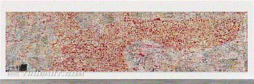 事实上,马克·布拉德福德的绘画并没有使用油彩,它们是通过纸张的聚积和刮擦、拼贴和解构拼贴形成的一些有着丰富肌理的层面。他用纸张、胶水和填充剂形成表层,再用工业用打磨机、刀和漂白剂对表层进行清除、剥离和溶解。当形成一种陈旧的样态后,这些材料便成为时间和地点的标记,揭示着当代日常生活的层层叠叠。