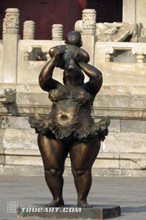 一,胖与力的结合。肥女雕塑在外形上的力度显而易见,不少雕塑以力见长,重量级的体型、高难度的动作,一反古希腊雕塑静默的传统,又颠覆了肥女多半虚胖的观念。肥女雕塑以阴柔之气反衬着阳刚之美,把阴柔和阳刚结合得非常到位。